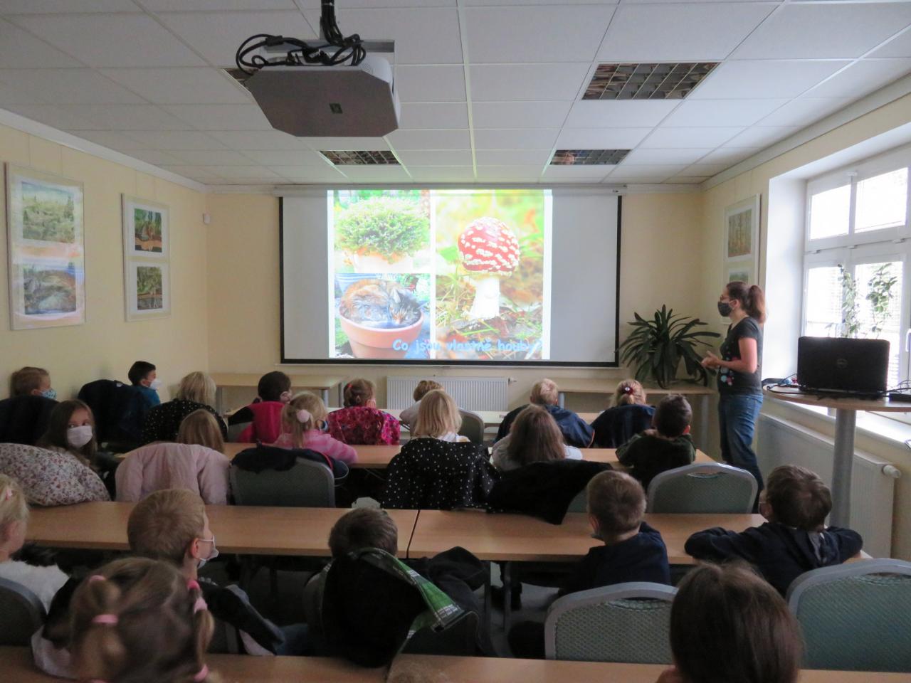 | Po delší době jsme opět navštívili s naší školní družinou budovu CHKO Slavkovský les. V úterý a ve středu, ve dnech 5. a 6. října, pro nás její pracovníci (Mgr. Rolková, RNDr. Jaška) připravili besedu o houbách a zvířátkách, které můžeme najít v našich lesích. Děti zhlédly naučný film a prohlédly si vystavené exponáty hub a zvířat volně žijících v našich lesích. Nejvíce je zaujaly exponáty vlka, jezevce, sovy, orlovce říčního a lasičky hranostaje. Moc děkujeme všem aktérům, za krásné a nevšední odpoledne, ze kterého jsme si přinesli mnoho krásných zážitků a zajímavých informací. |