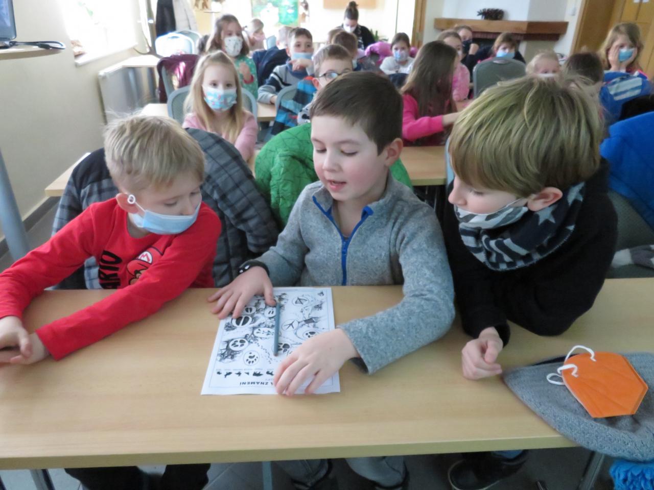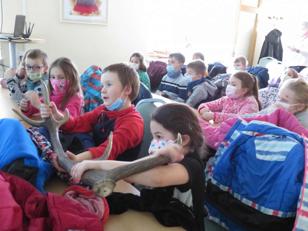 Ve dnech 14. a 15. února jsme opět navštívili CHKO Slavkovský les. Byla pro nás připravena beseda na téma "Les v zimě". Děti zhlédly naučný film, který jim přiblížil volně žijící lesní zvířátka a rovněž je seznámil s tím, jak přečkávají zimu. Pak si zasoutěžily a prokázaly své znalosti ze světa zvířat. Zahrály si tripexeso - zvířecí rodinky a na magnetické tabuli se učily přiřazovat lesní zvířátka do oblastí, kde je v přírodě najdeme.