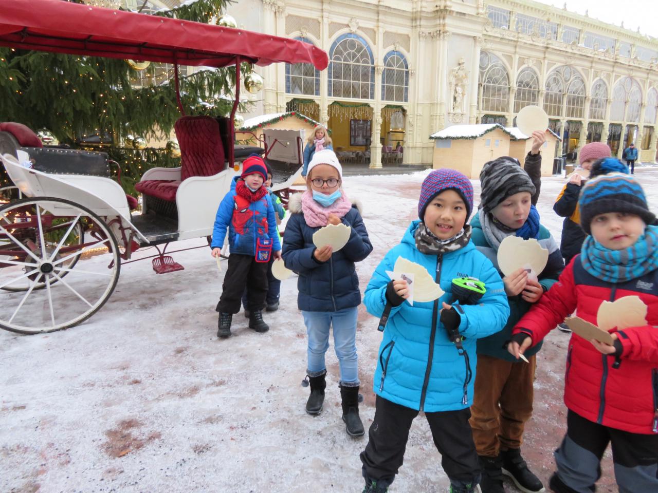 Společně s dětmi z kroužku Všekutílek jsme se na závěr roku (6. prosince) vypravili na Kolonádu v Mariánských Lázních. Prohlédli jsme si vánoční strom, ochutnali teplou oplatku a načerpali tak krásnou vánoční atmosféru. Při zpáteční cestě jsme pozorovali vánoční výzdobu ve městě a velké množství rozsvícených světýlek ve výkladních skříních obchodů. Celou cestu nás doprovázel padající sníh. Bylo to příjemně strávené odpoledne.
