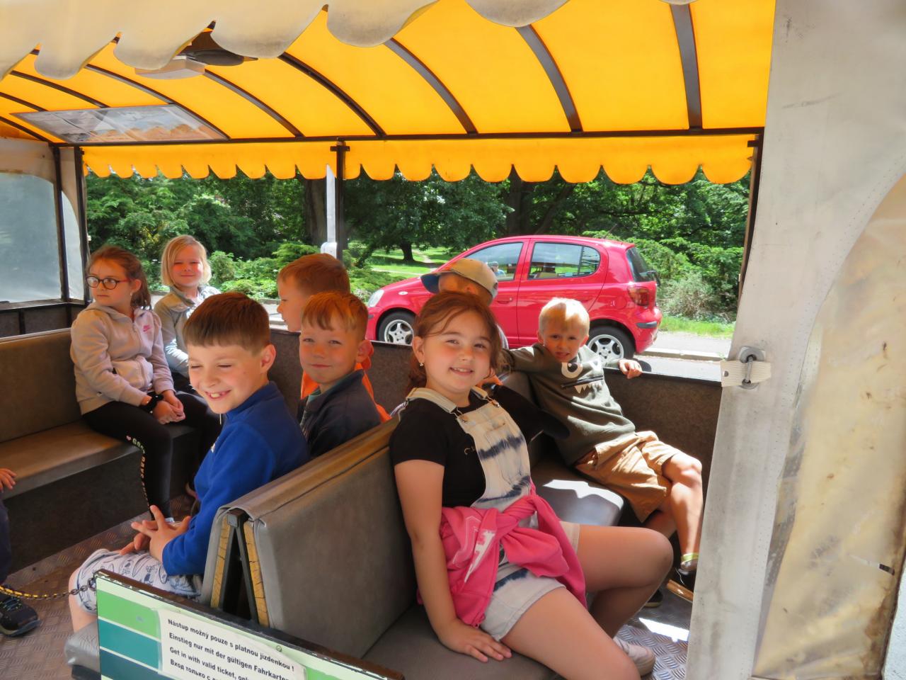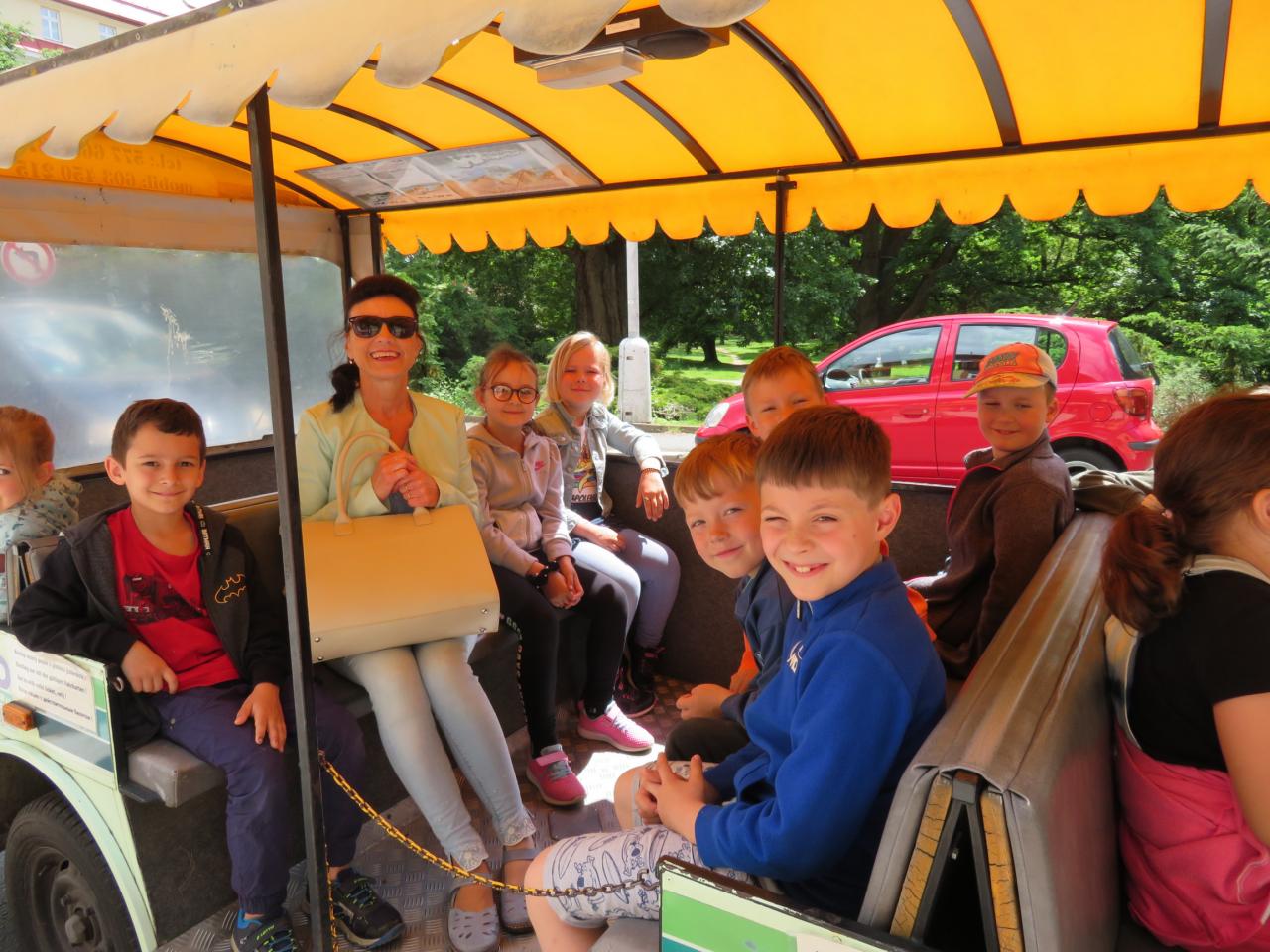 V pátek, dne 10. června, jsme nasedli do minivláčku a vyrazili na jízdu, která trvala téměř třičtvrtě hodiny. Protože byl zájem opravdu velký, vláček musel na svou trasu vyrazit celkem 3x. Děti si prohlédly zajímavá místa a budovy v Mariánských Lázních. Počasí bylo příjemné a slunečné. Cesta se nám moc líbila. Doufáme, že sluníčko bude svítit dětem i celé prázdniny.