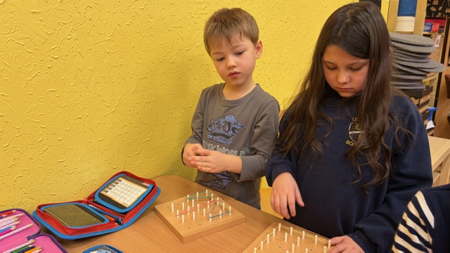 Děti pracovaly na různých stanovištích, kde s dopomocí počítaly do pěti, stavěly stavby z kostek podle návodu a na geodeskách procvičovaly geometrické tvary. Všichni pracovali s velkým zaujetím, radostí a chutí objevovat nové věci.